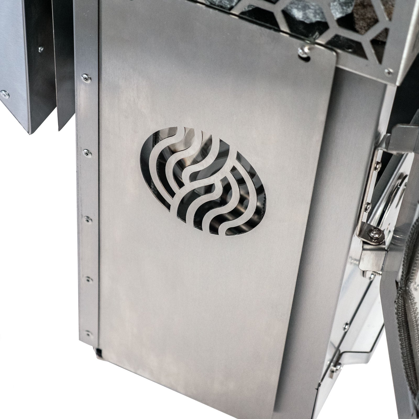 Overland's latest USA made stove changes everything. No more fire building! Just add wood pellets and your sauna is off and running on it's own. This gravity fed pellet stove will elevate your sauna experience and keep you sweating from head to toe. Delivering warm, radiant heat and a fire box that creates a beautiful atmosphere for everyone to gather around. Powered only by wood pellets, this stove offers a sauna session that is cost effective, clean burning and able to be taken anywhere.